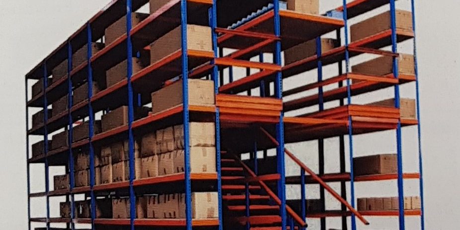 Para aprovechar el espacio vertical de su almacén creando distintas plantas de estanterías, comunicadas en tres si por escaleras y pasillos. Sistema modular. Puede ampliarse la instalación tanto lateralmente como en profundidad.